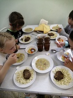 Полноценное, сбалансированное питание, комфортные условия проживания, занятия на свежем воздухе условия для выполнения задач оздоровления детей в "Сосновом бору".